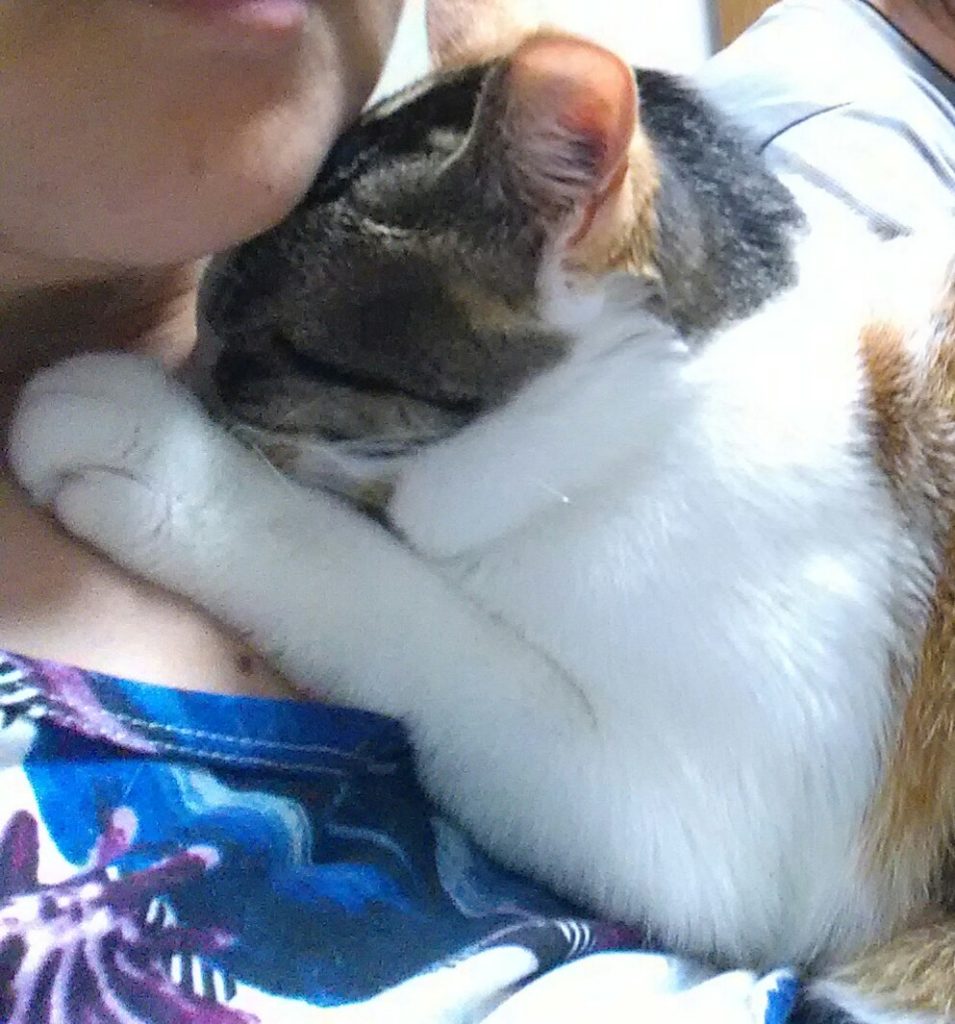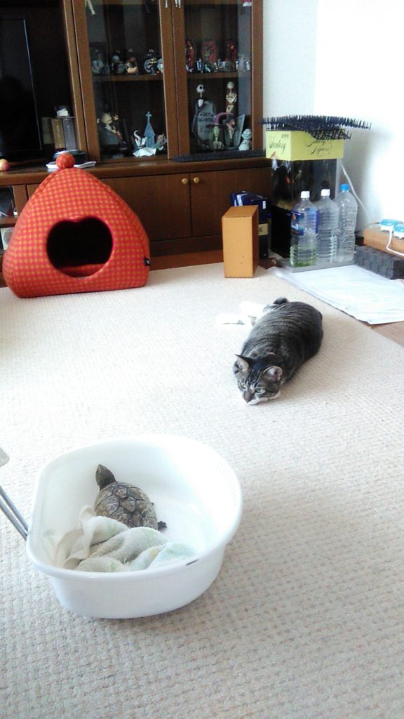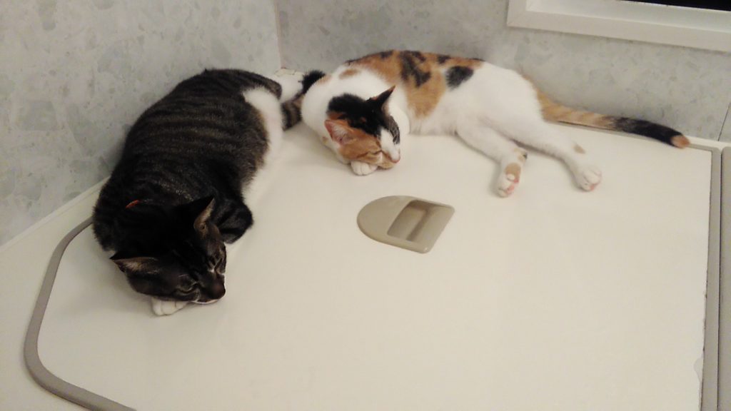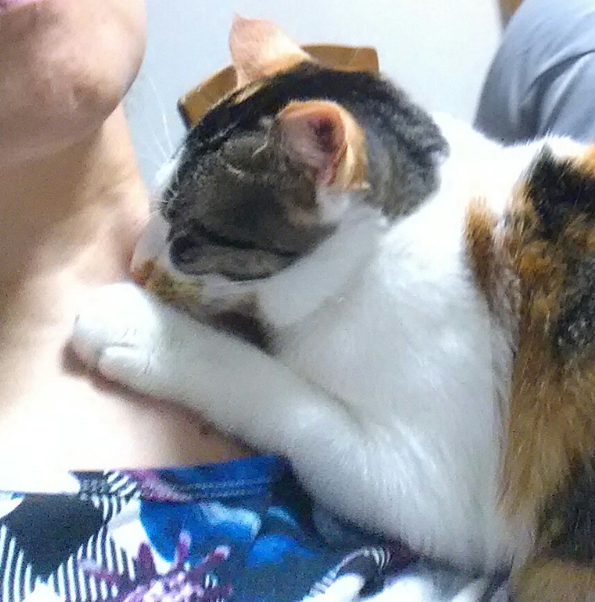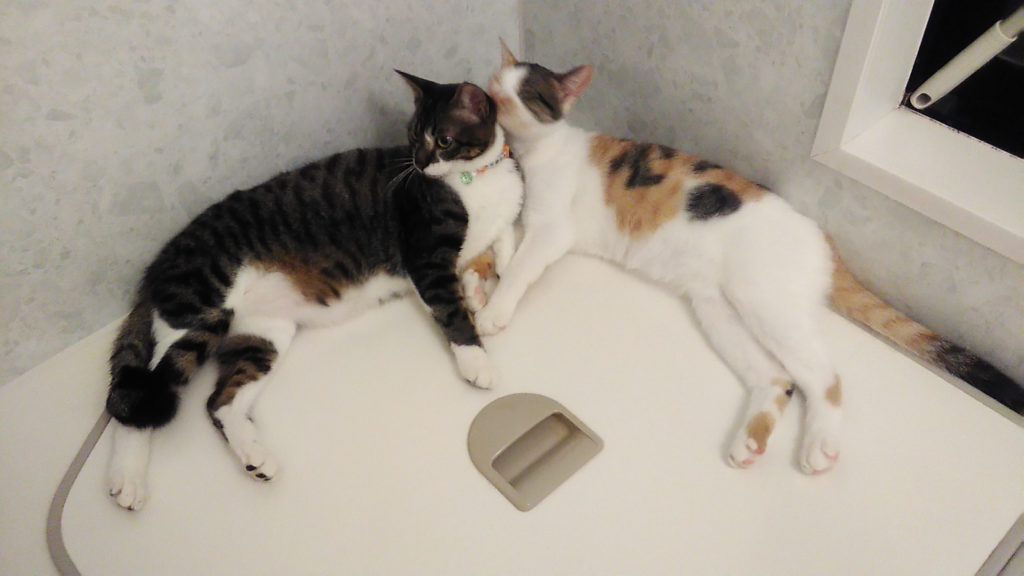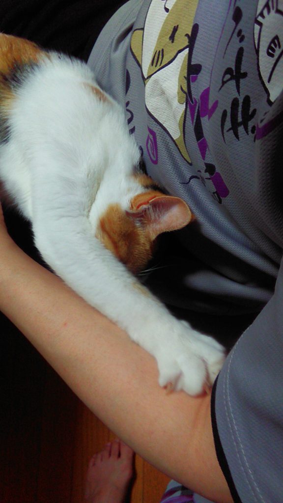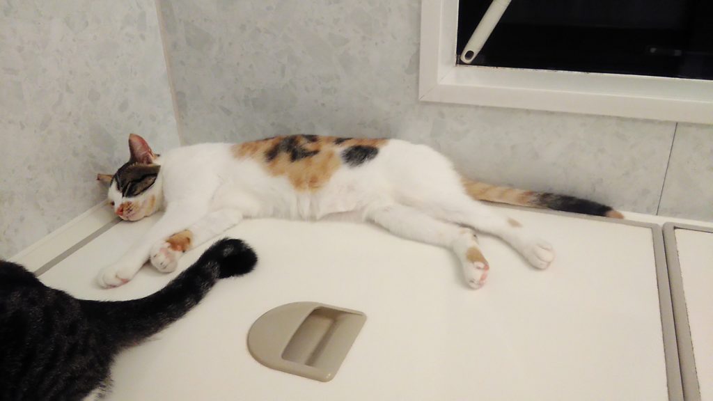 寝ようと思ったらチッチは玄関踊り場に移動した棚の上にいました😺