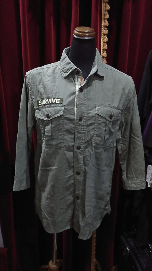 MEN’Sのカーキ×英字・シャツ、ブラック柄・Tシャツ