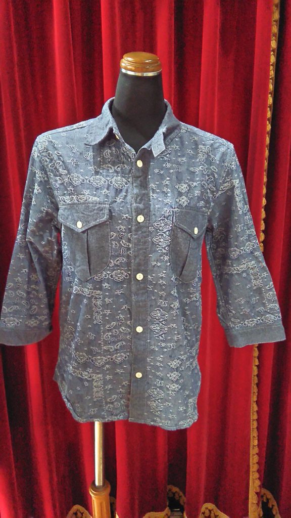 入荷したてのMENSのダンガリー×ペイズリー・シャツ、ホワイト×英字・シャツ、新品のホワイト・シャツ