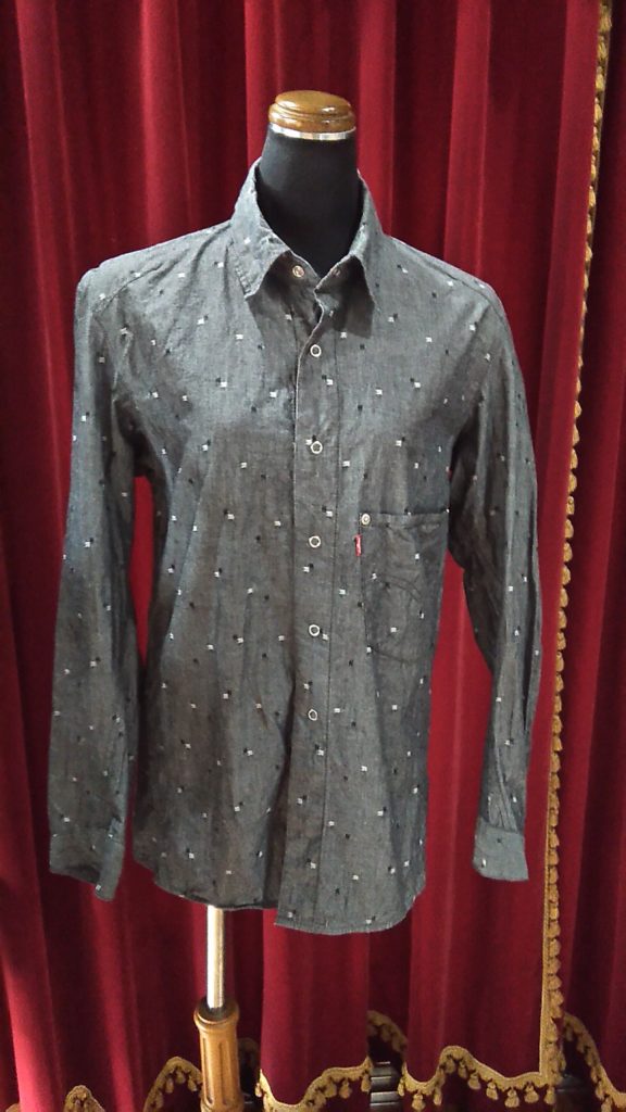 入荷したてのLEVISのMENSのダンガリー柄・シャツ、ミント・シャツ、新品のパープル×英字・カットソー、ホワイト×TOWN・Tシャツ、グレー×ネックレス柄・Tシャツ、新品のネイビー柄・Tシャツ
