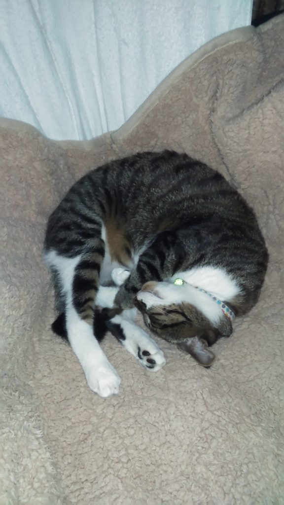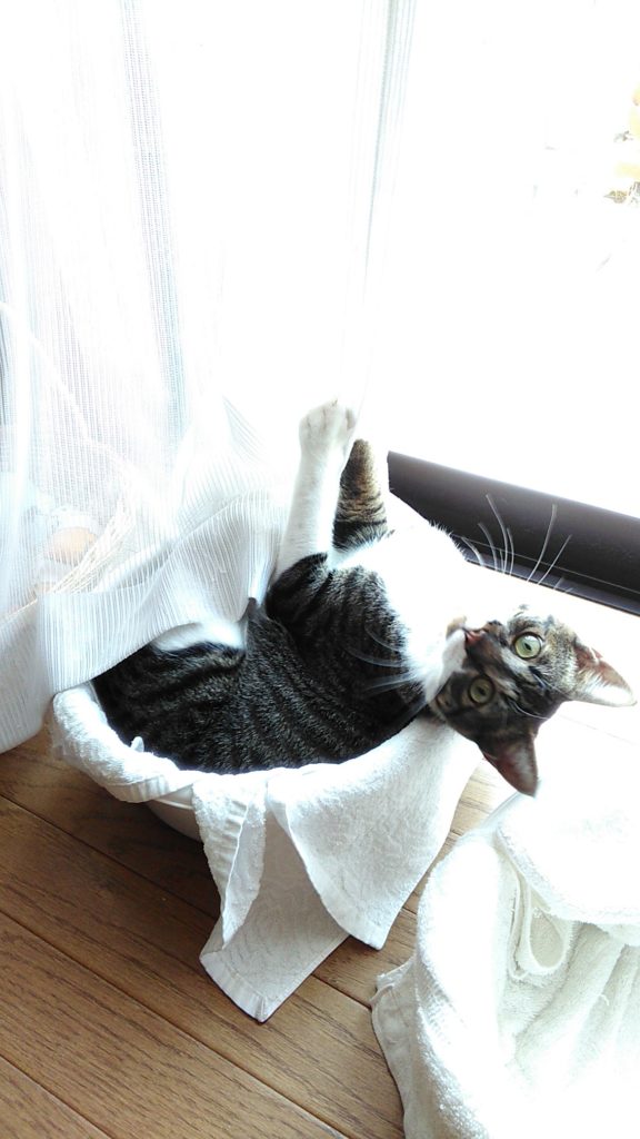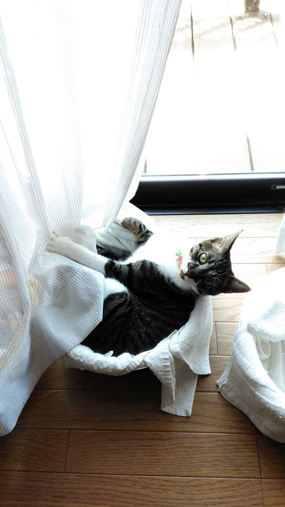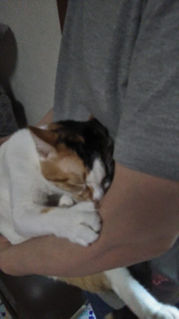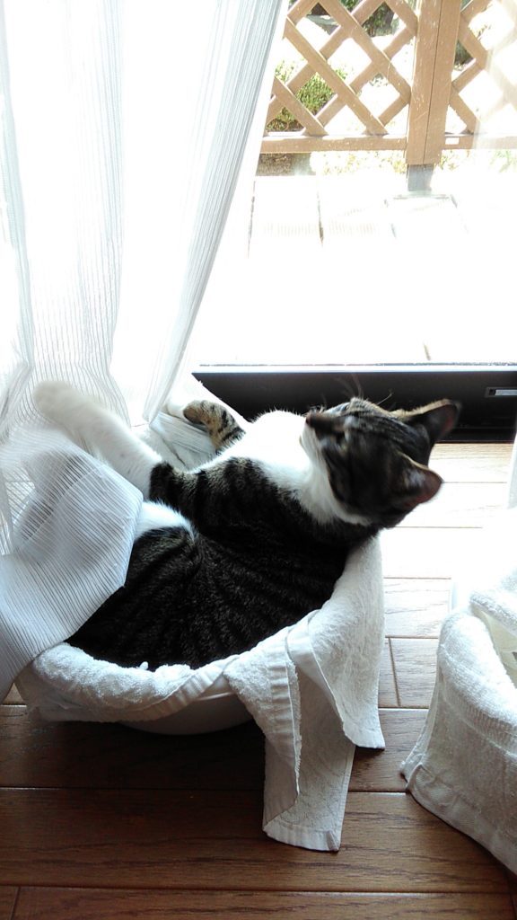 チッチは最近夜は玄関の棚上で気持ちよさそうに寝ています💤