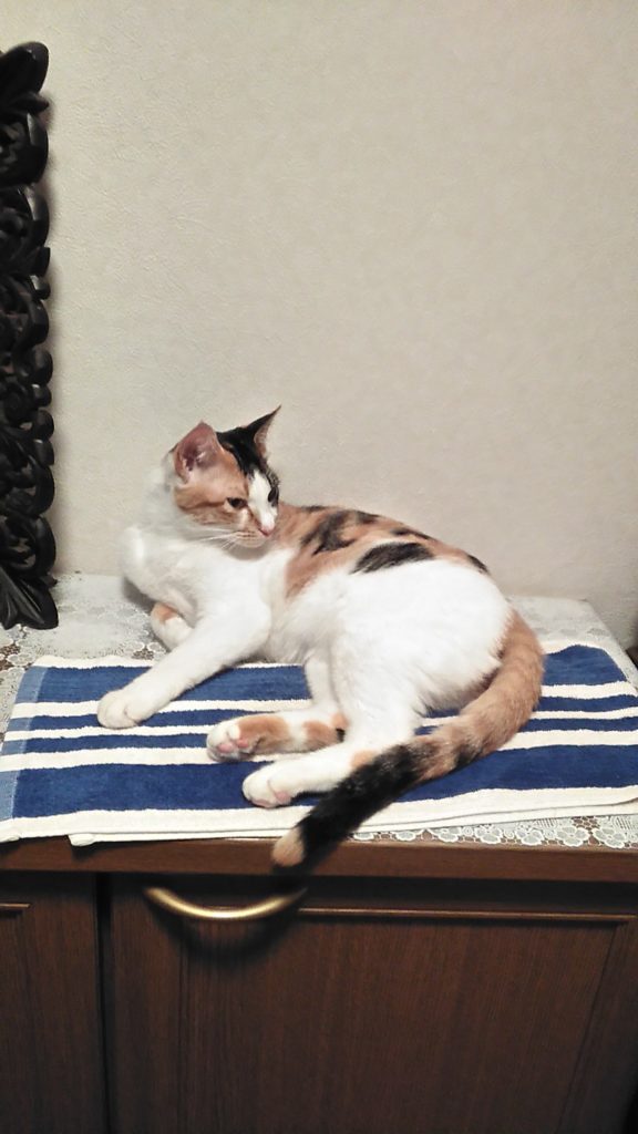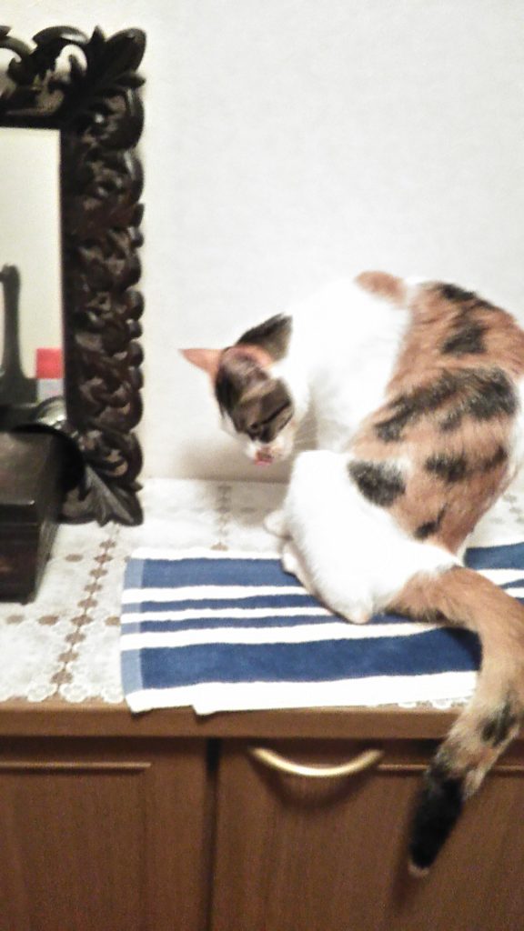 こぶちのお気に入りの下駄箱の上に天然石の置き物があって邪魔そうだったから片付けてあげました👍