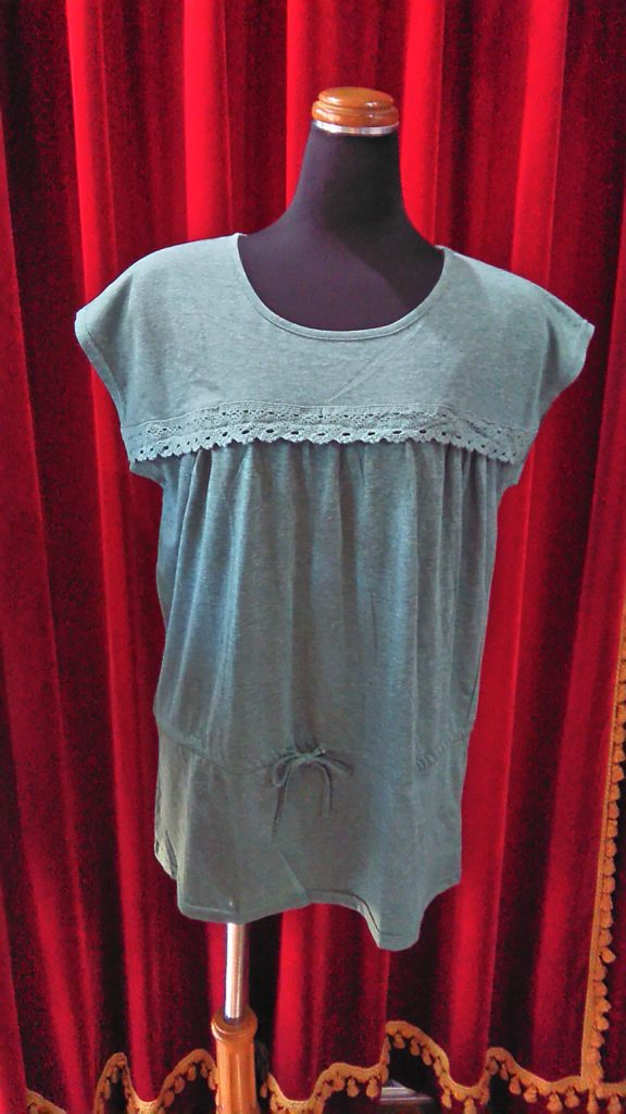 新品のモスグリーン×レース・チュニック、ブルー・ニットカーディガン、ネイビー・パンツをお買い上げくださいました👗