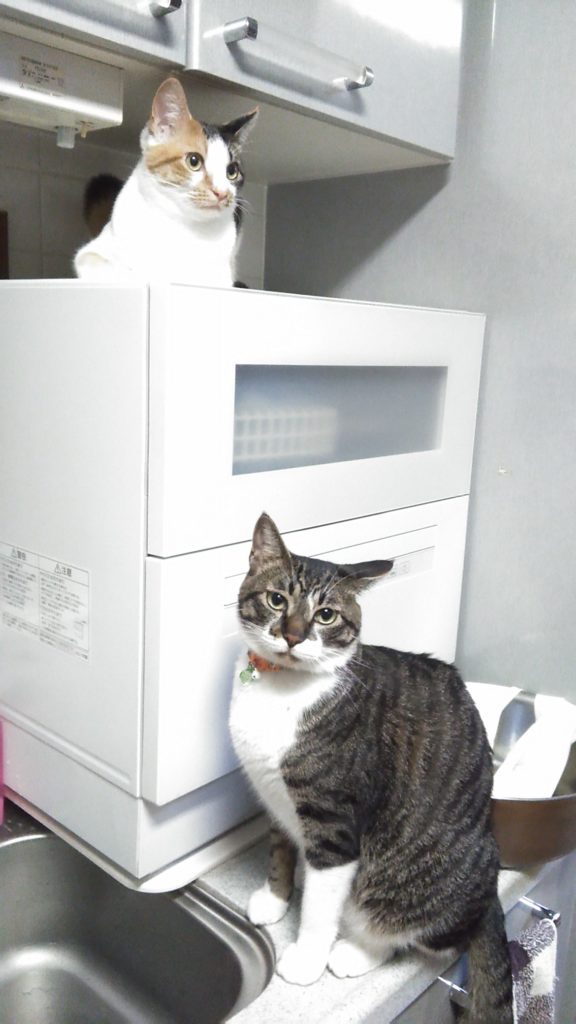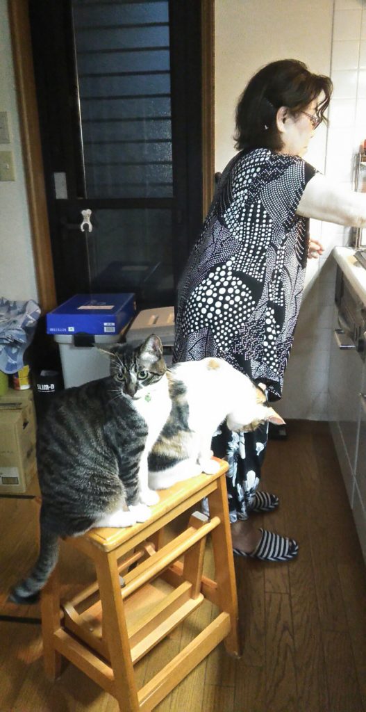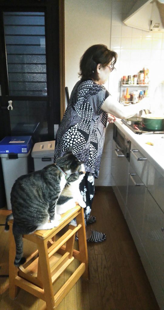ばぁばがカレーを作っていたらニャニャ達は一緒に見守っているみたいです😺😺