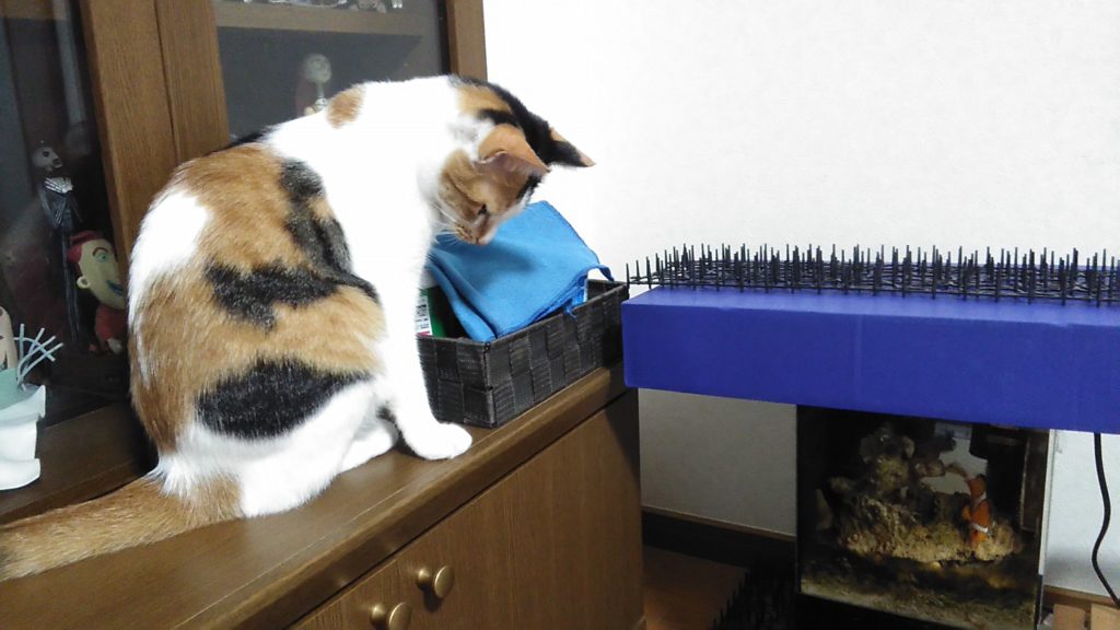 キャットタワーを部屋の真ん中に置き、棚に近いドアの前に水槽のコンセントがあるので危ないからテントやベッドで塞ぎました💦