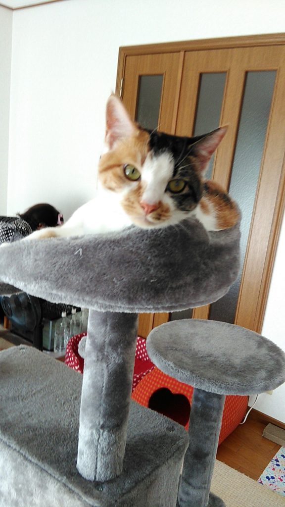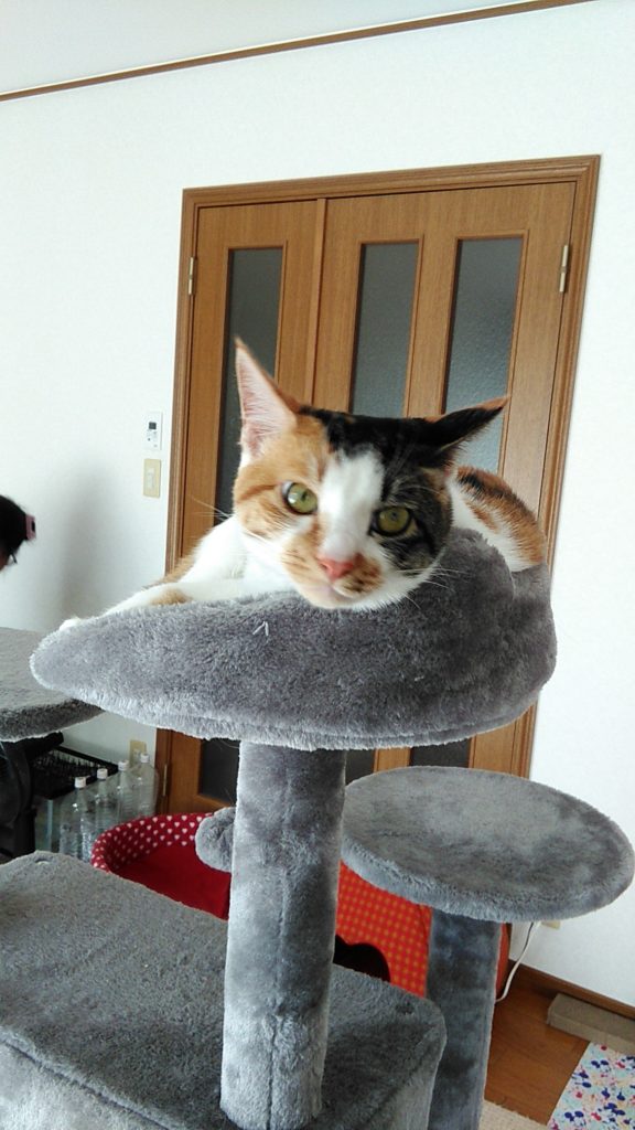 体が大きくなったので、キャットタワーが少し小さいね😅