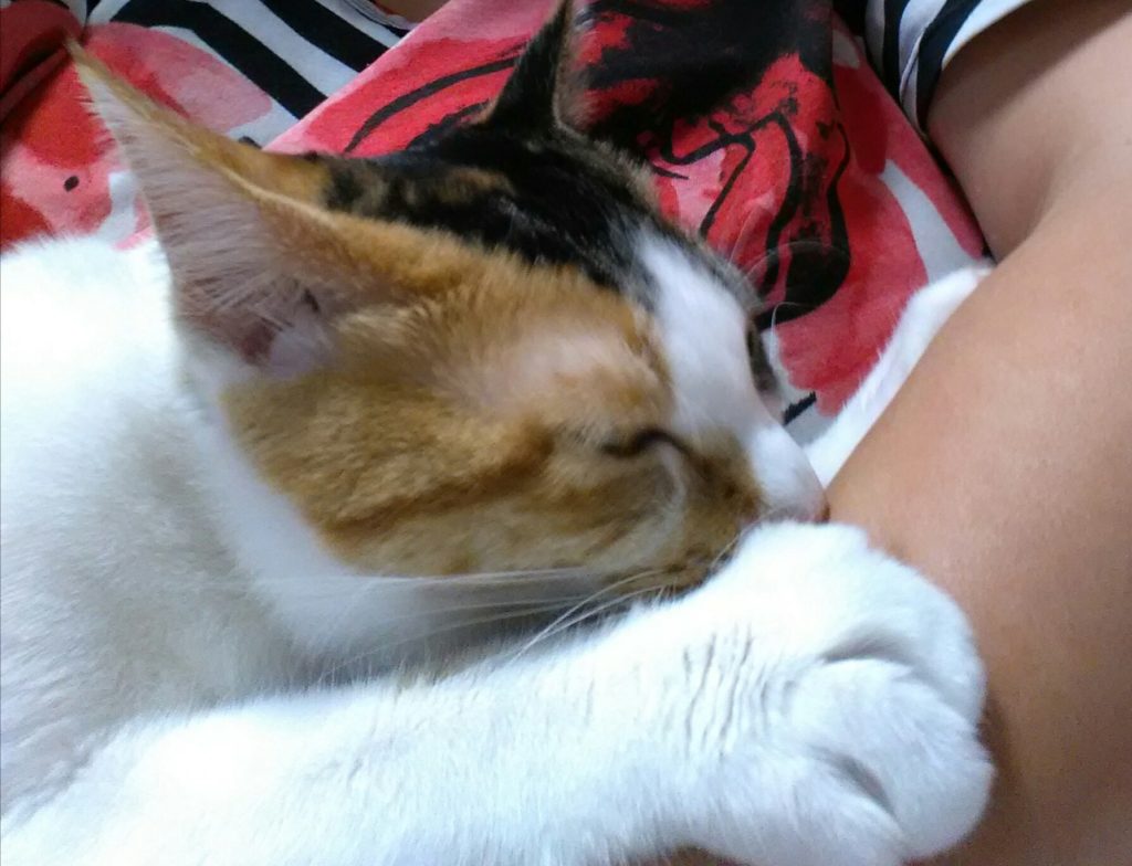 こぶちは棚の上にいた時、よく手にチュッチュ💋しました😺