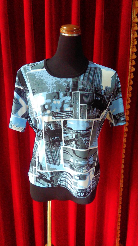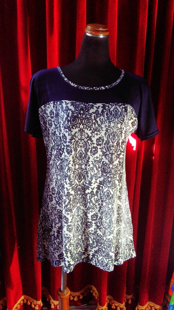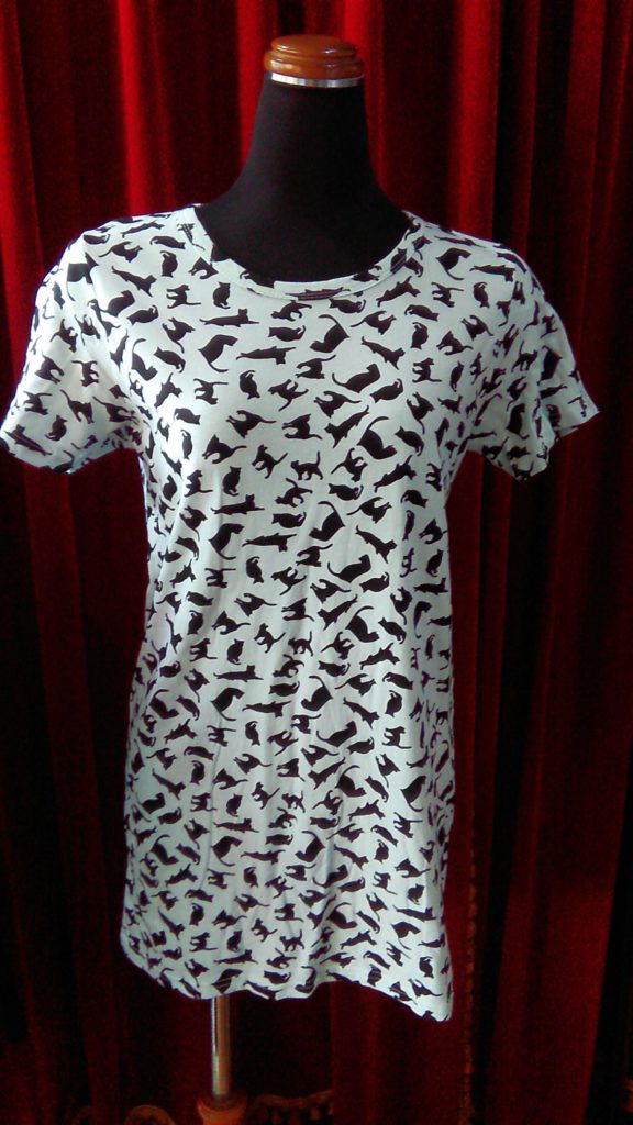 入荷したてのホワイト柄×ネイビー袖・チュニック、ライトブルー×CAT・チュニック
