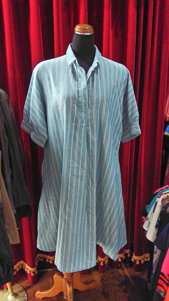 入荷したてのFASHION MESSAGEのフラワー・チュニックベスト、グリーン×ストライプ・ロングブラウス