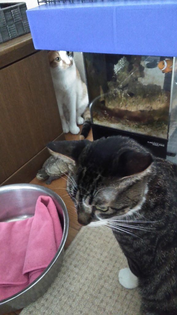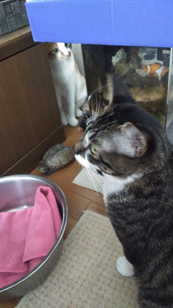 亀吉とは赤ちゃんの頃から一緒なので、いじめたりはしません😺😺🐢💕
