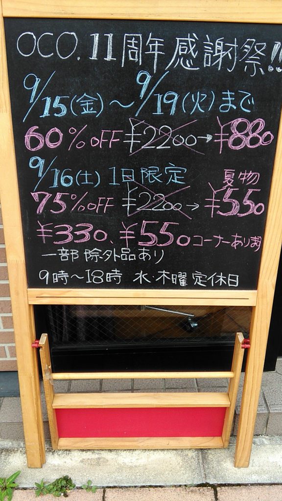 また、明日9月16日(土)は夏物お洋服が550円になります🎉