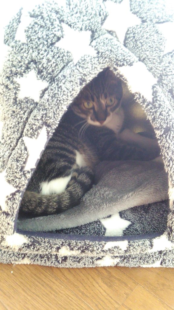 チッチ、2階に置いてあるお出かけ用のキャリーバッグの中でくつろいでます😺