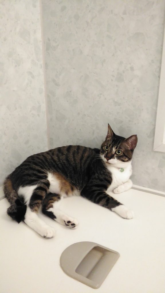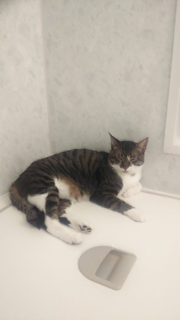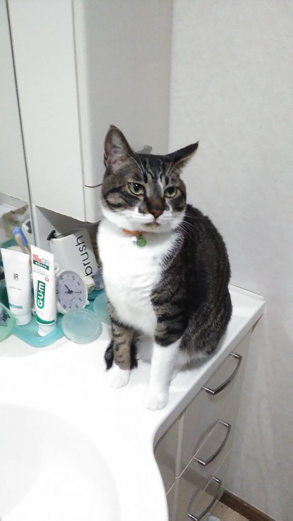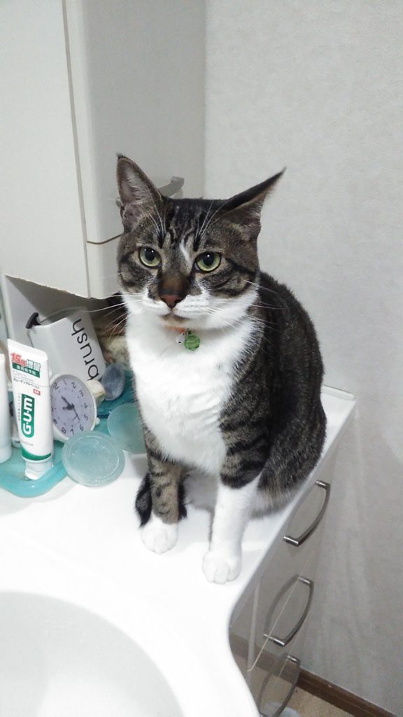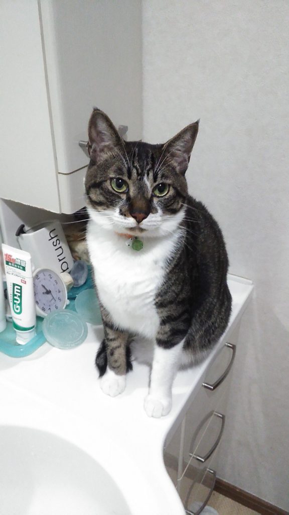 抱っこしてほしい時は、洗面台の上に上がって私の目をジーッと見て手を出します😺💕