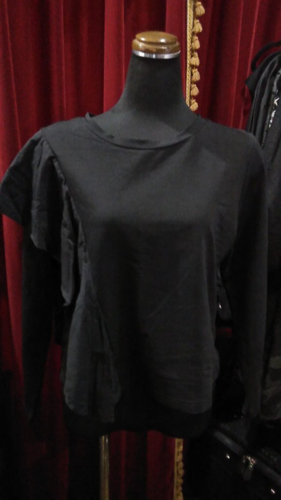 ブラック×肩フリル・チュニック、ベージュ・ハーフコート、新品のブラック×シフォン重ね・もんぺパンツ、ライトグリーン×ラメ・ストールをお買い上げくださいました👗