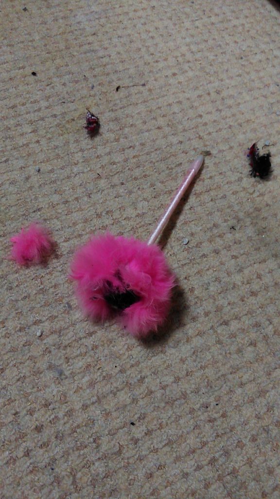よく見ると、ピンクファーのボールペンのファー部分がボロボロになって飛び散ってました😰💦