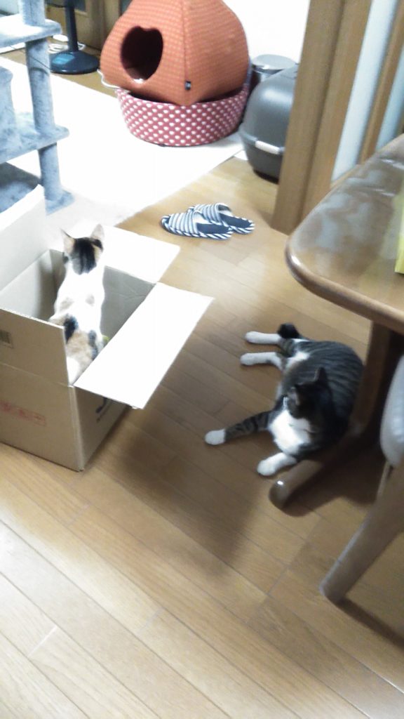 早速空き箱で遊んでます😺😺