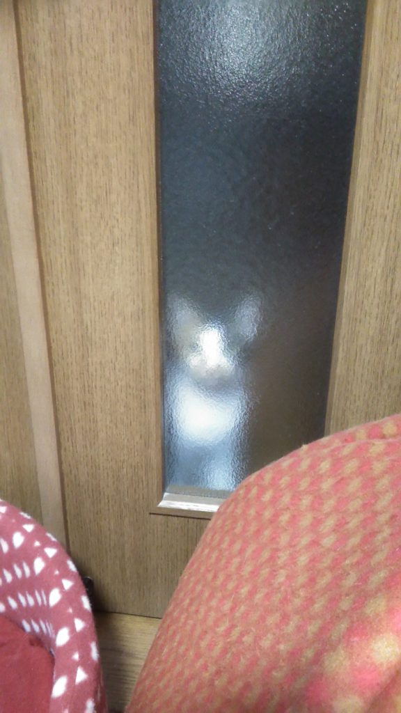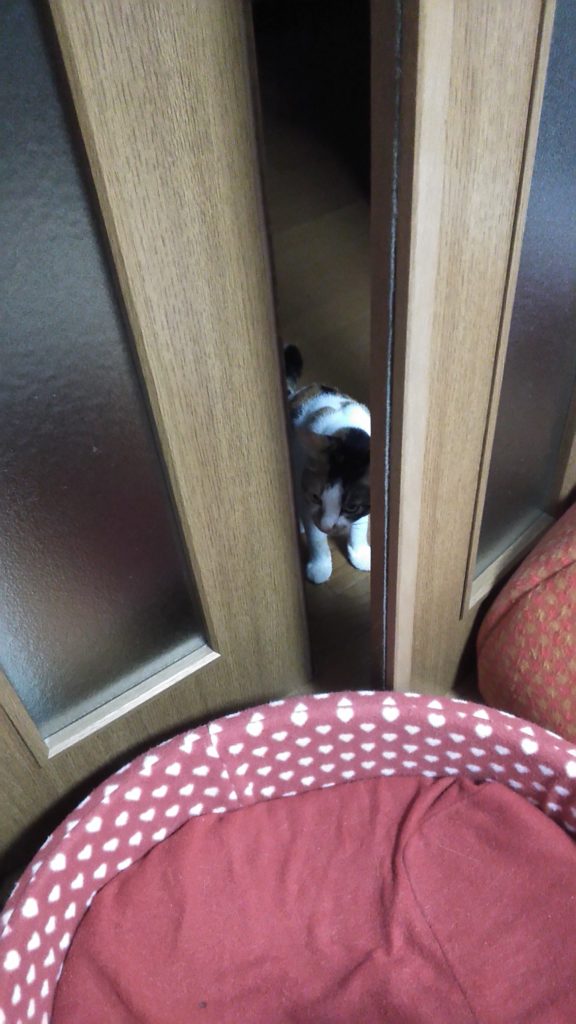 お風呂から出て、ふと見たらこぶちがドアの向こうにいました😺