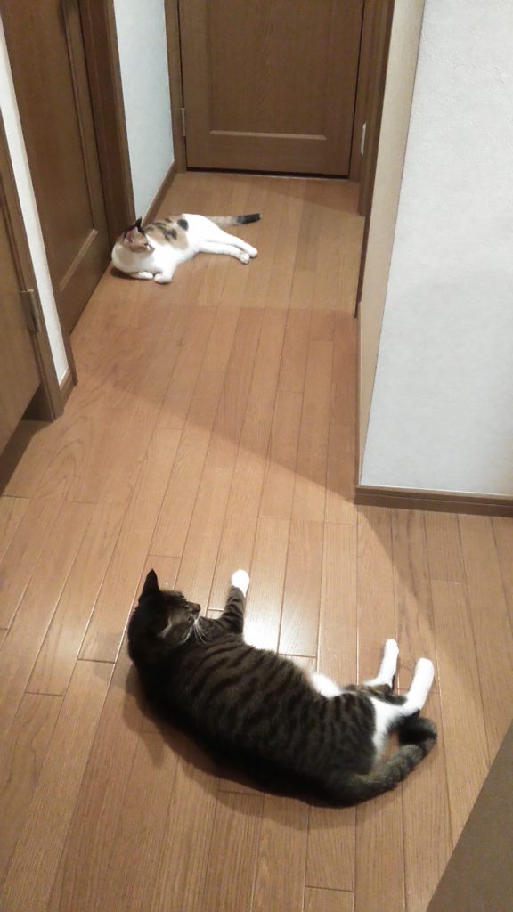 こぶちはくつろいでますが、チッチは落ち着きがありません💦