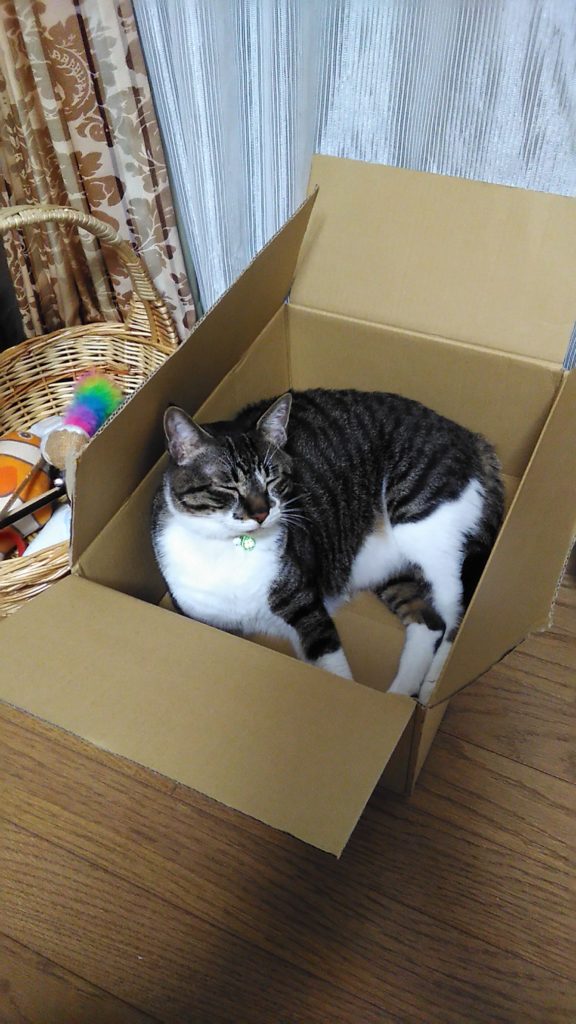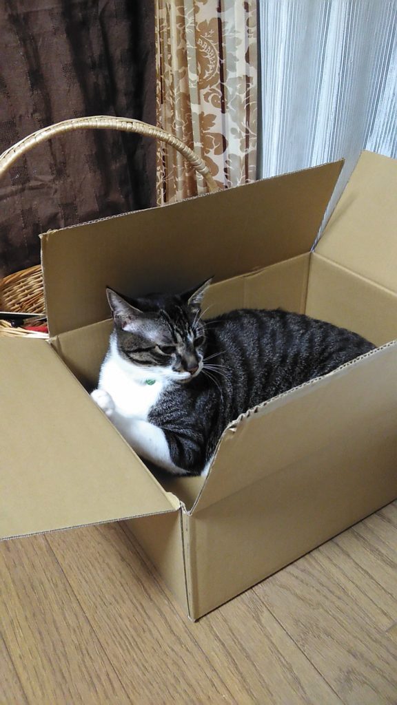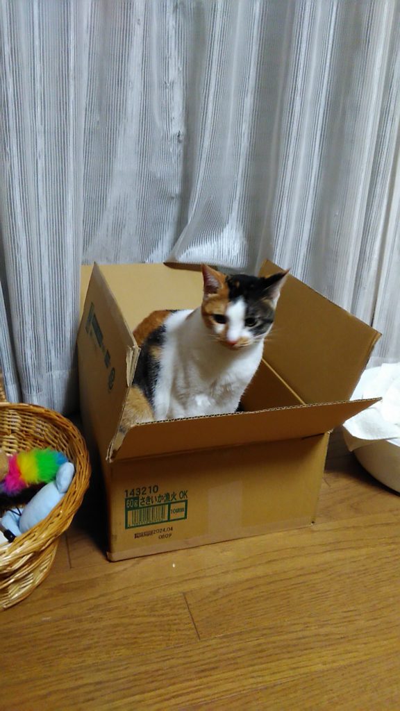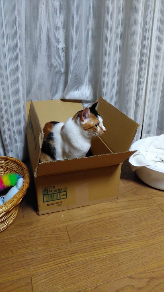 スーパーからもらってきた新しい段ボールに入って遊んでいます😺😺
