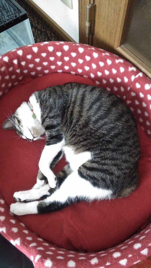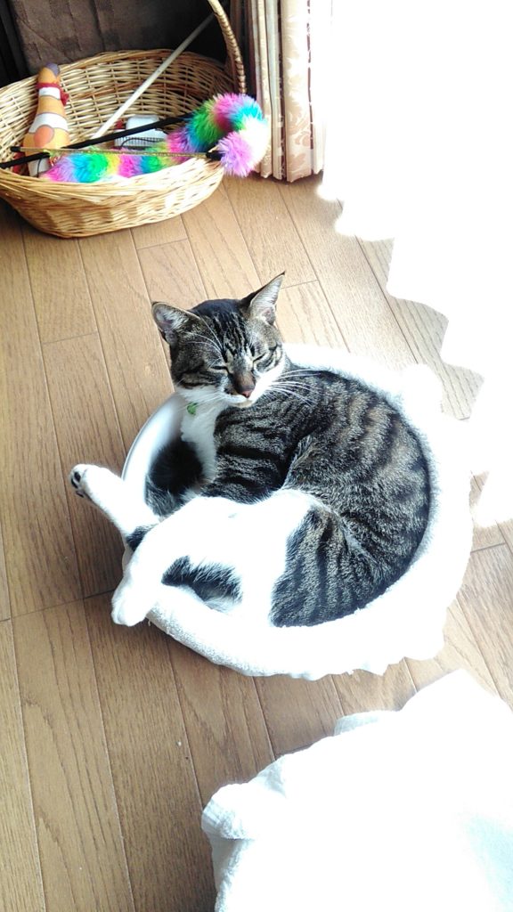 朝はいつも元気に走り回っているのに、めずらしく寝ていたチッチ♪