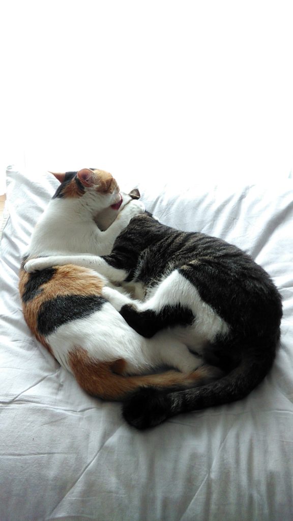 最初は仲良く舐めあってますが、すぐケンカになりこぶちがどこかに行ってしまいます😨