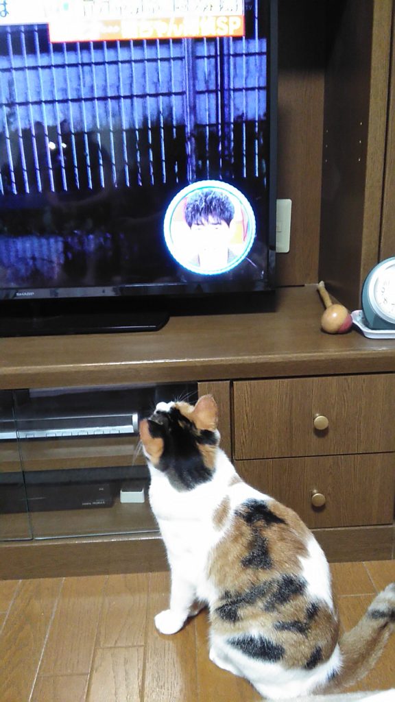 テレビに猫ちゃんが出ていたら、こぶちが真剣に見ています😺📺