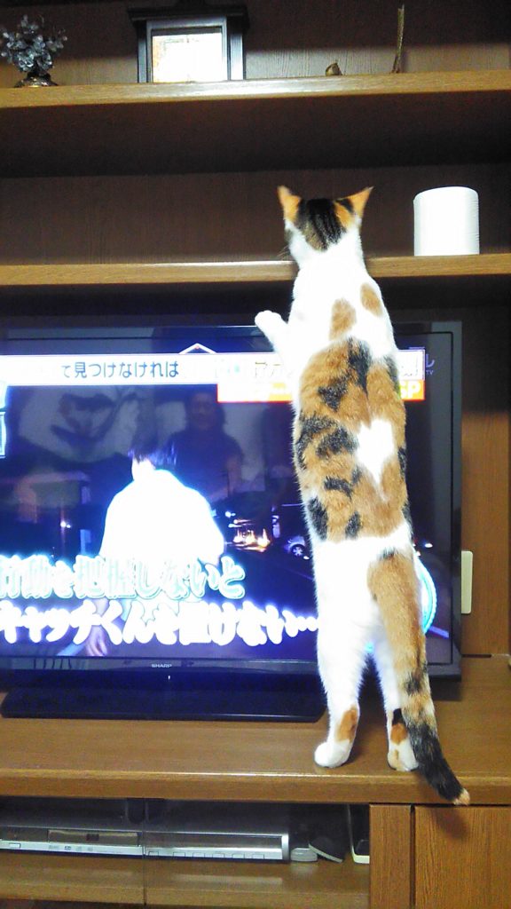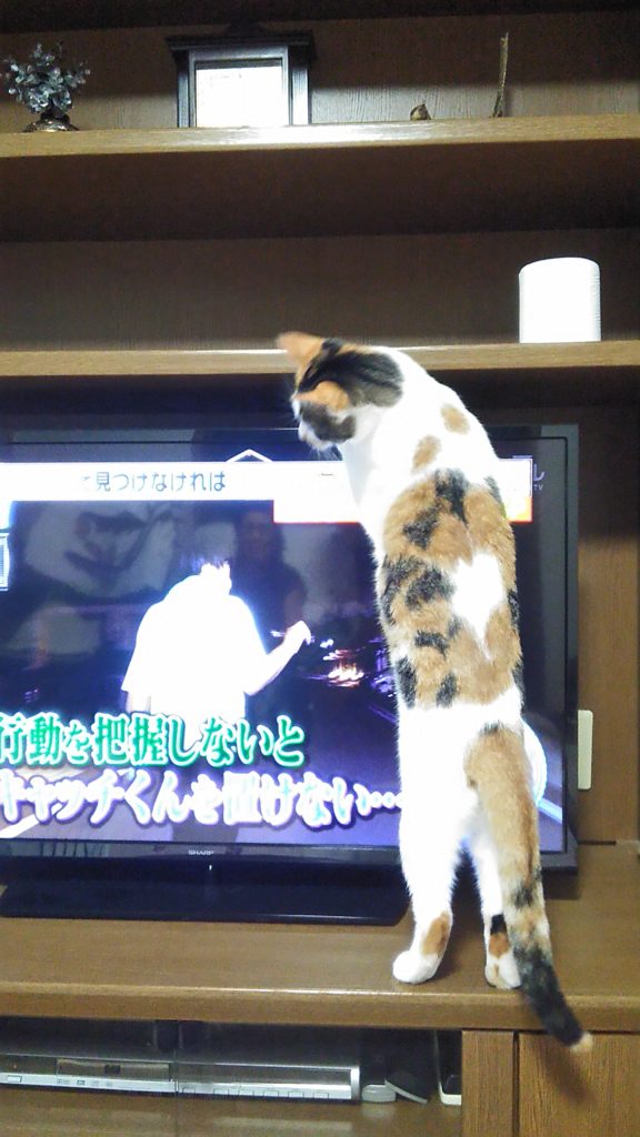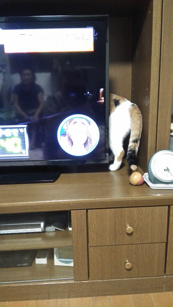 テレビの後ろに猫ちゃんがいるのではないか❓