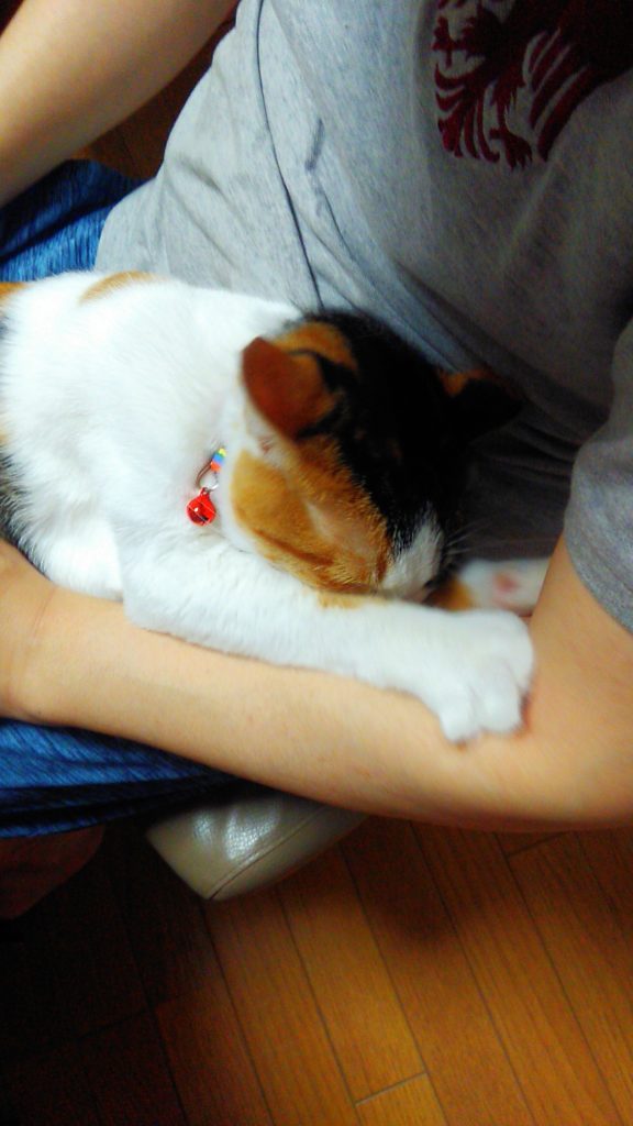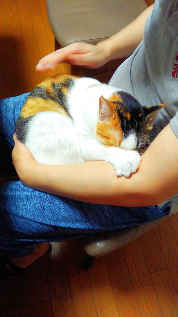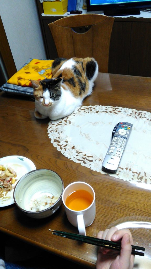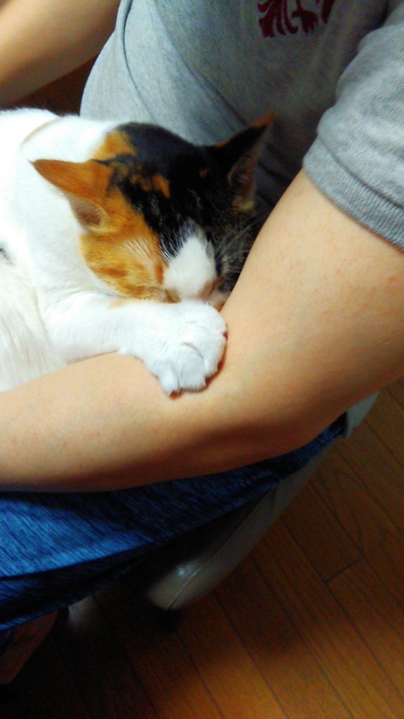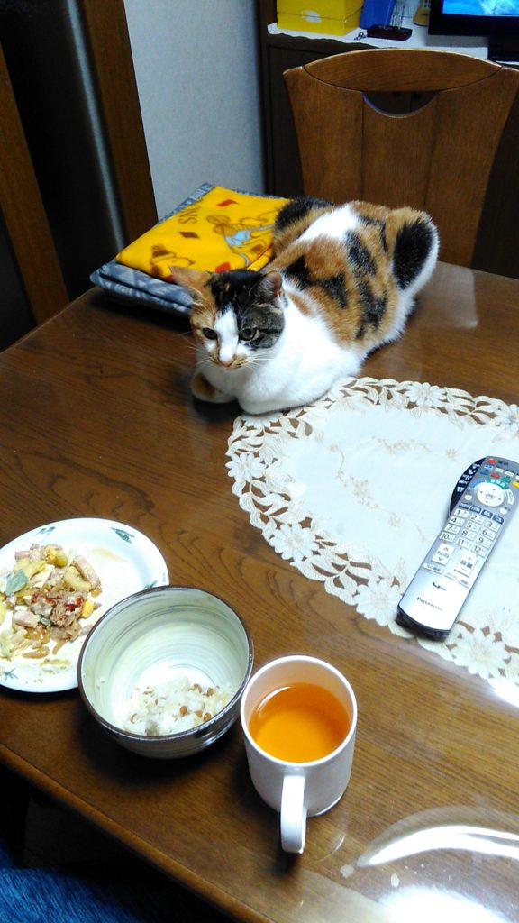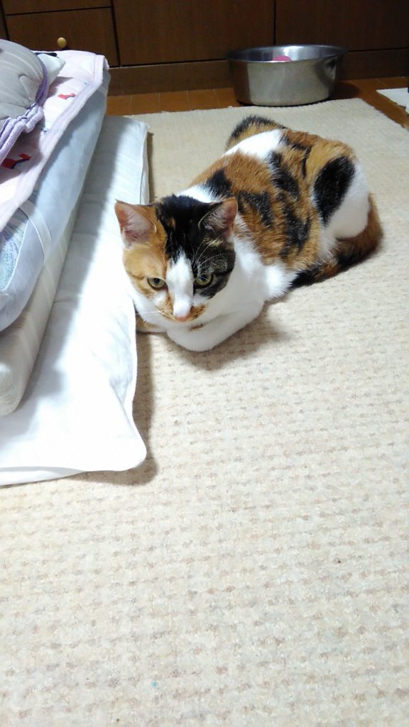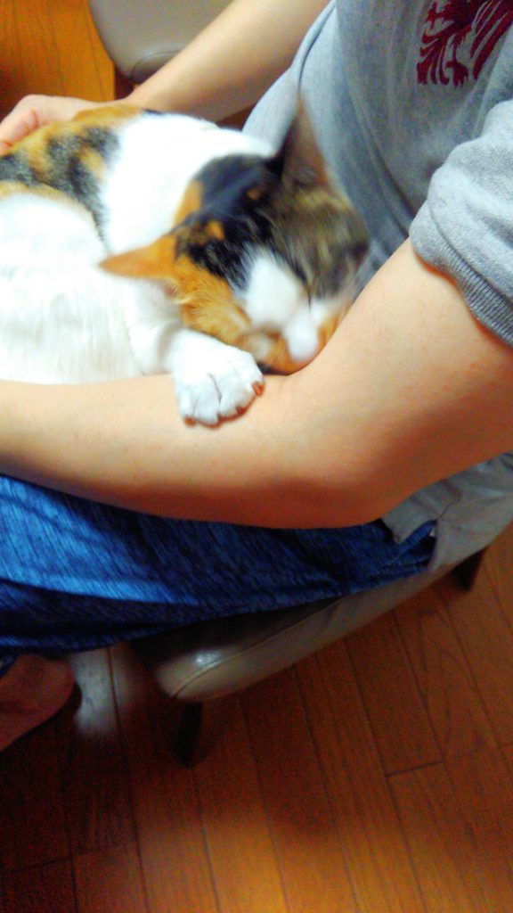 朝方、足元に入って来たチッチ♪