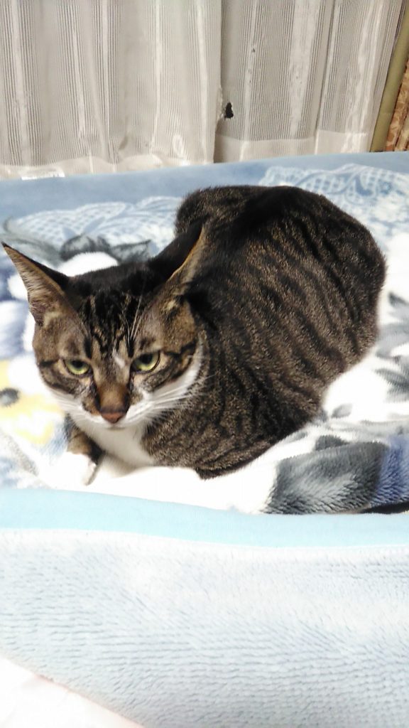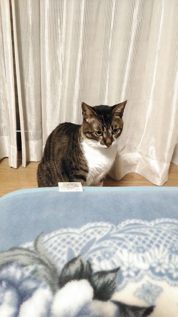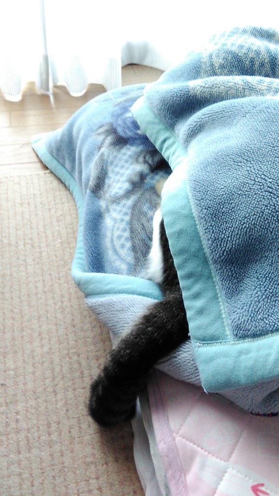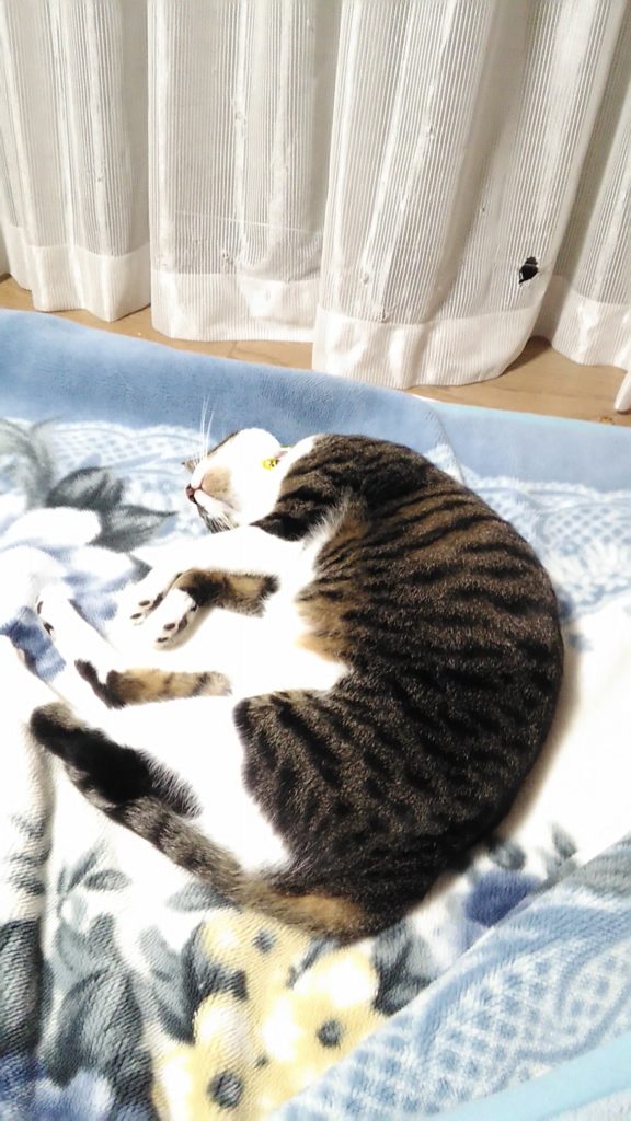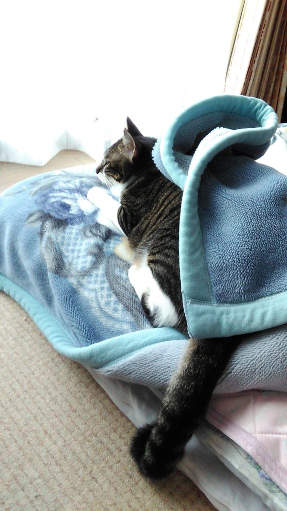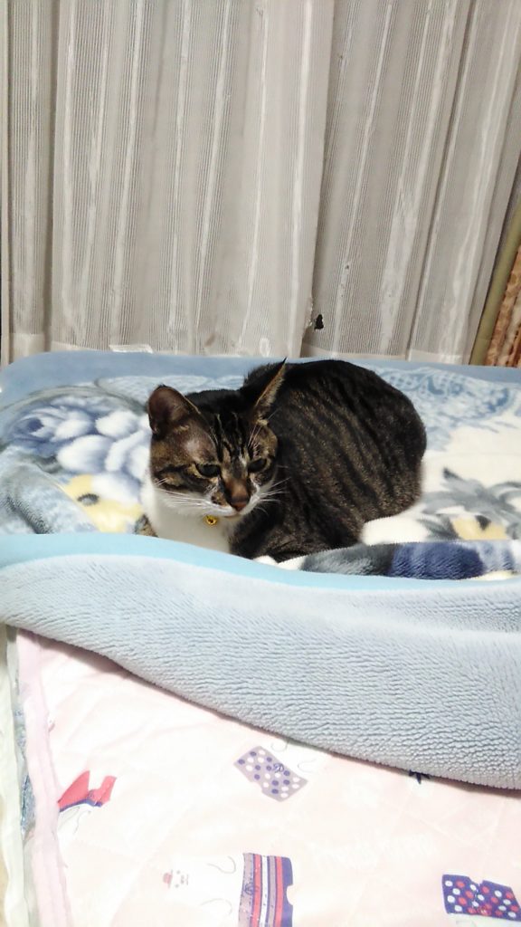 いつもは朝方なのに、夜お布団で寝ていたチッチ😺