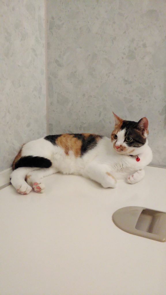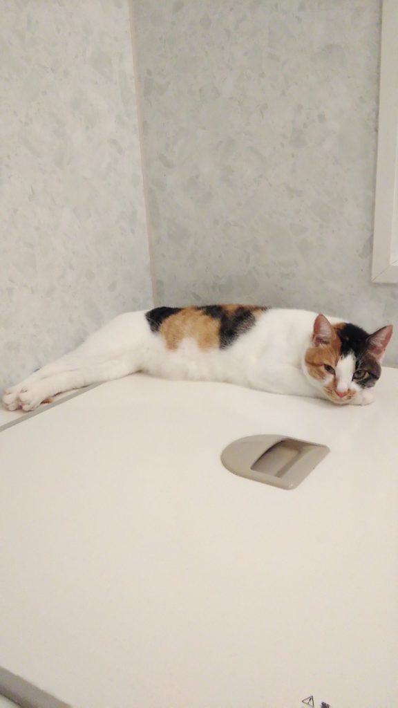 こぶちはテレビの上の棚にいました😺