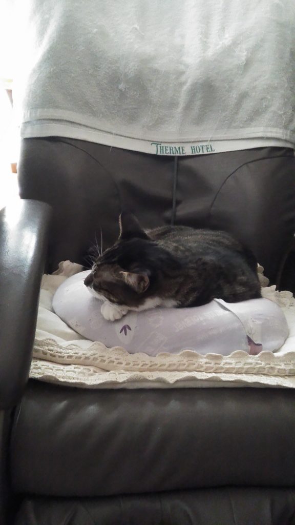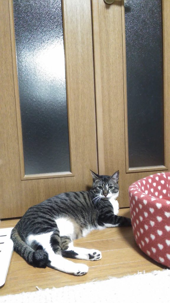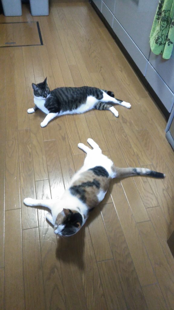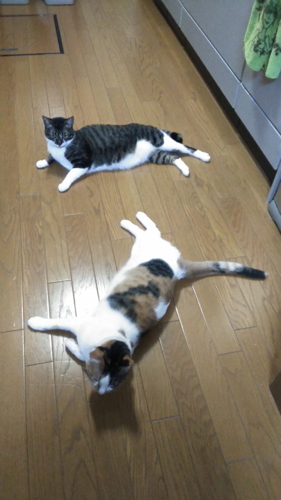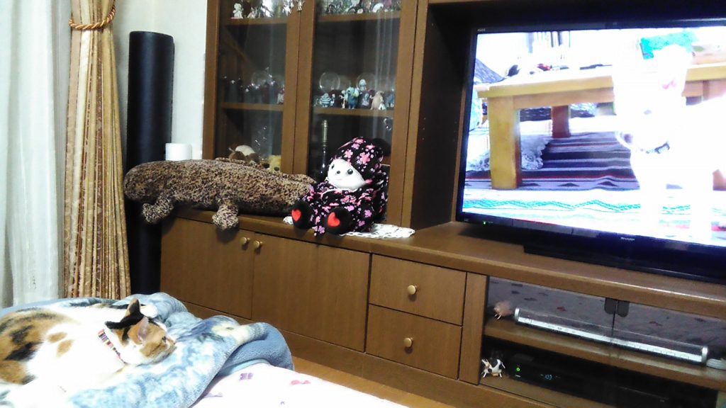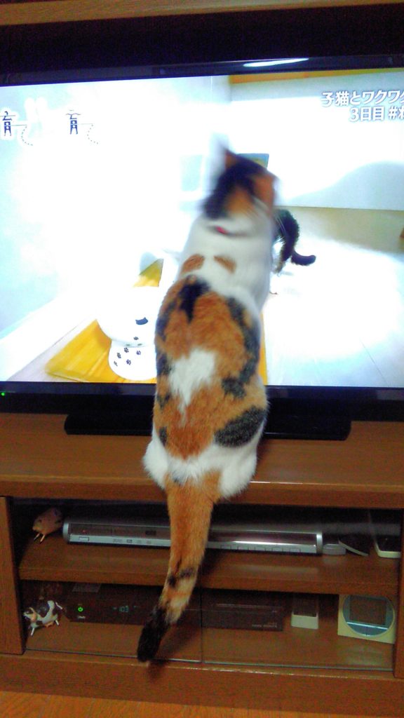 夕飯前、テレビで保護猫やってたので見てたらこぶちも来て一緒に見ました😺📺