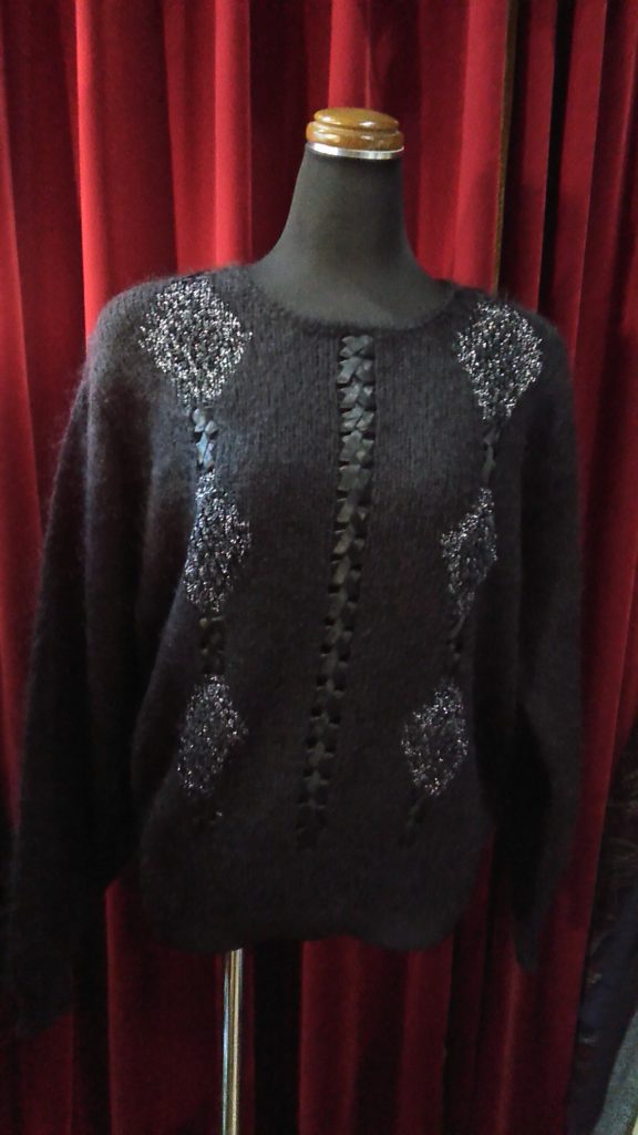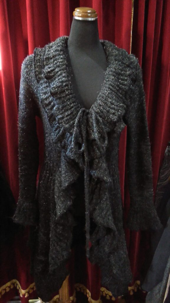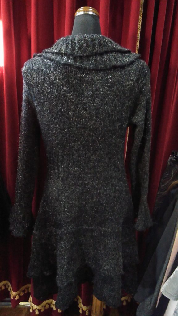 入荷したてのグレー・ニットマント、ブラック・モヘアセーター、グレー×フリル・ニットカーディガン、ブラック・セーター、新品のALPHA CUBICのブラック・ハーフブーツをご予約頂きました👢