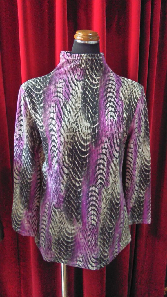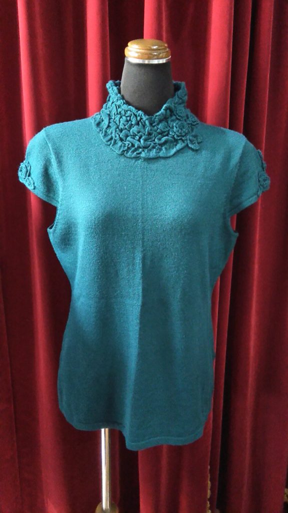 モスグリーン×フラワーアップリケ・ニットベスト、パープル柄・チュニック