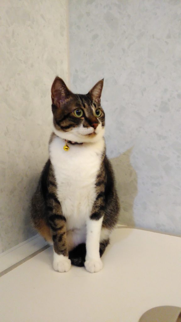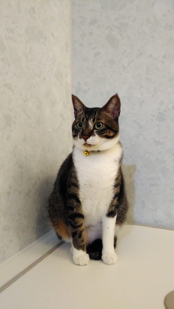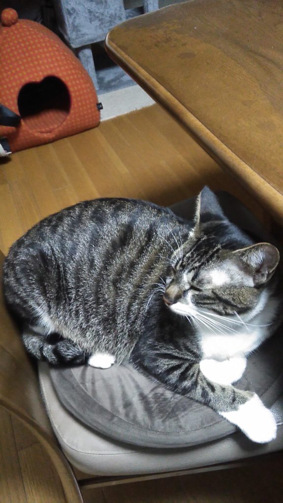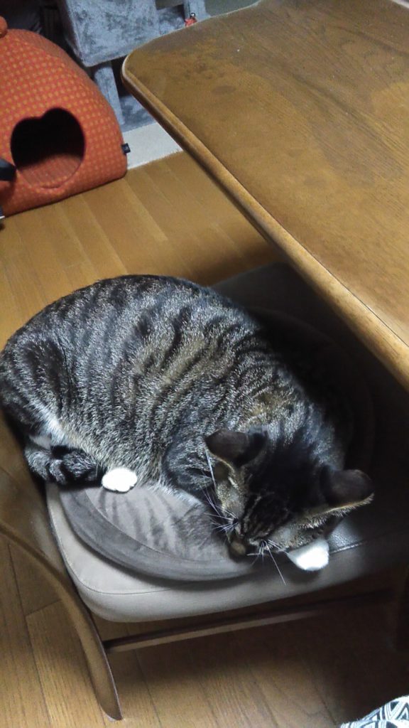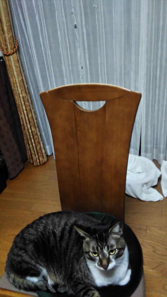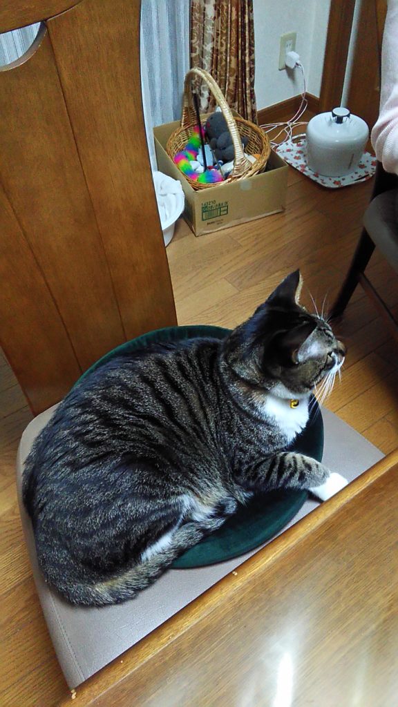 夕食を食べようとしたらチッチがママの席でくつろいでます😺