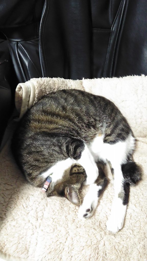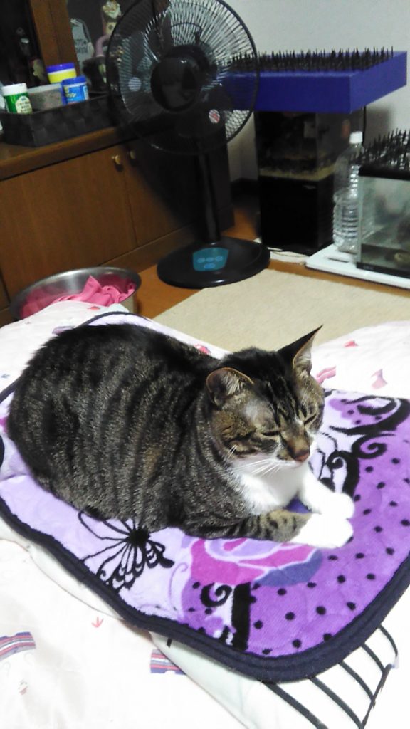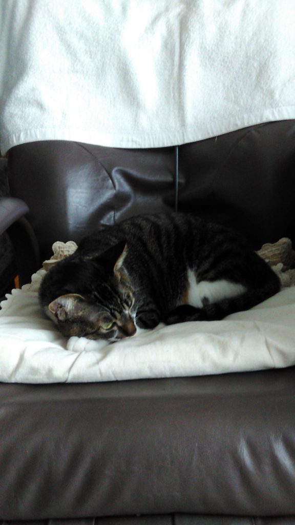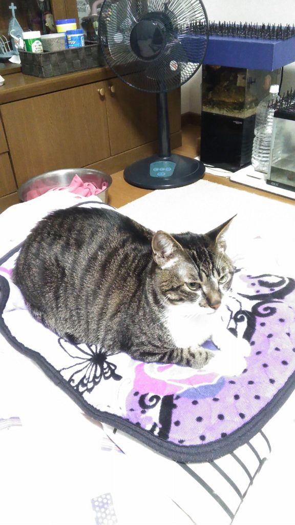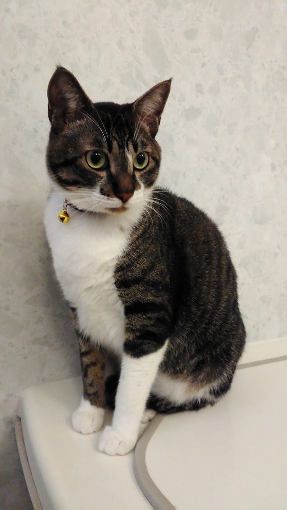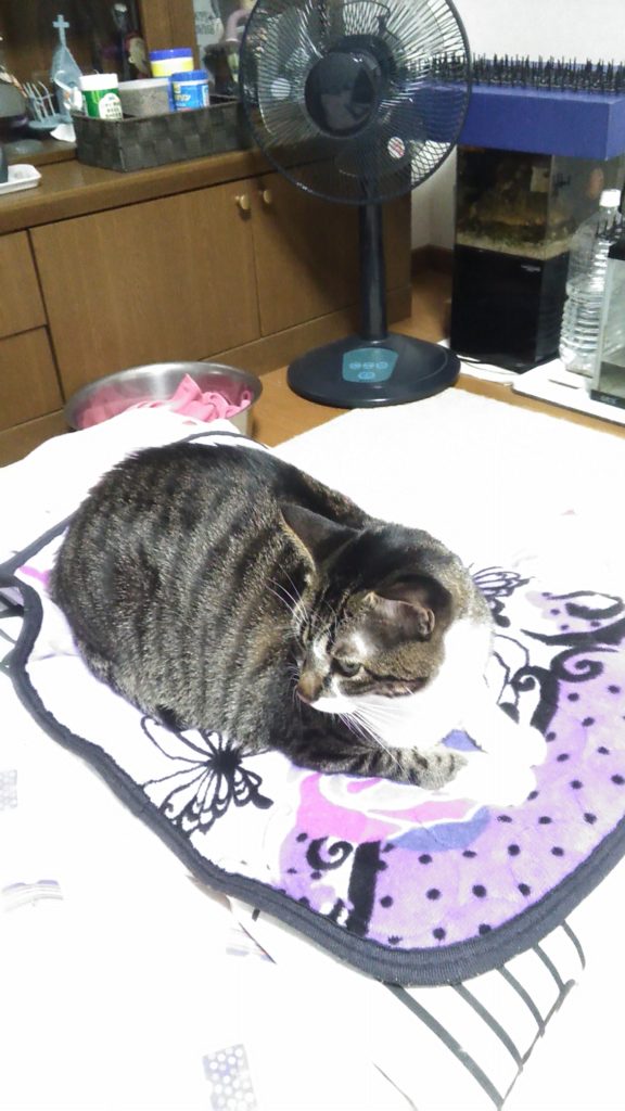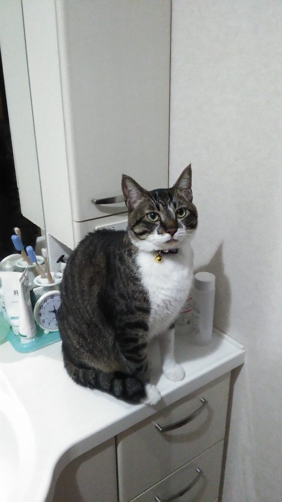 夕食を食べようとしたらチッチがママの席でくつろいでます😺