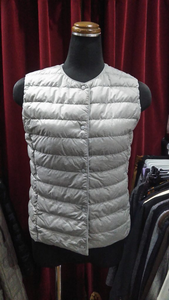 入荷したてのホワイト×ブラック柄・チュニック、ブラック×フリル・ニットカーディガン、UNIQLOのグレー・フェザーベスト、UNIQLOのベージュ・フェザーベストをご予約頂きました👗