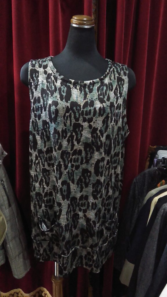 新品のブラック×小花・裏起毛チュールタートル、ブラウン×レオパード・チュニックベスト
