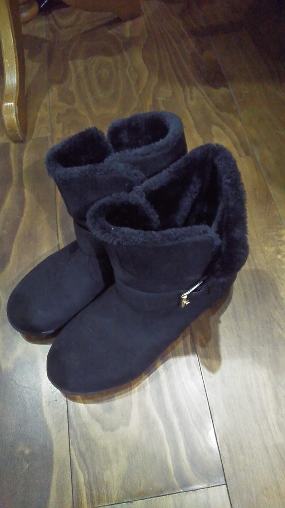 入荷したてのブラック×ボア・ハーフブーツ、ホワイト×ボア・帽子、ホワイト・ニット帽子、グレー×ストライプ・帽子、ベージュ×ファー・手袋をお買い上げくださいました👗