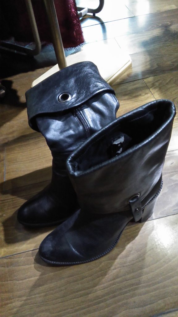 入荷したての新品のネイビー×ツィード・パーカー、ブラック・ダウンフェザーハーフコート、グレー×ブラック・ふわふわマフラー、ブラック・2WAYバッグ、ブラック・本革2WAYブーツをお買い上げくださいました👢