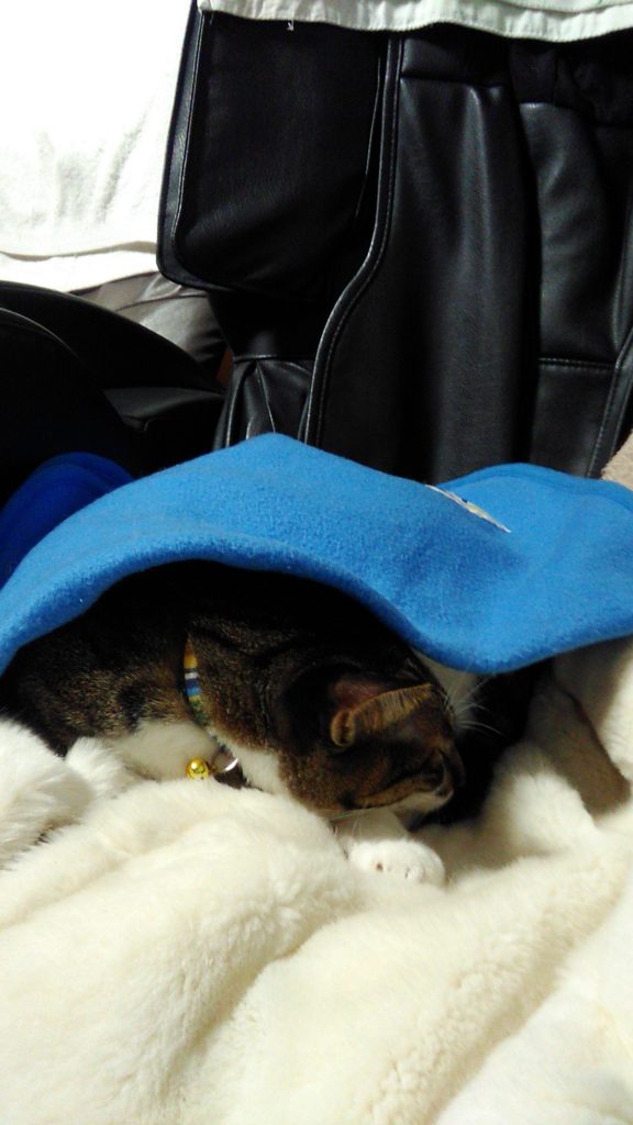 片付けていたら、こぶちがタオルを入れているケースに入ってしまいました😅