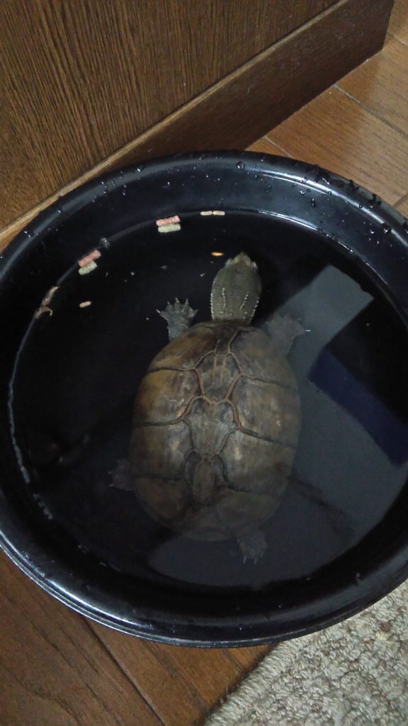 ばぁばからママに餌やりをバトンタッチしたら、亀吉痩せました👍