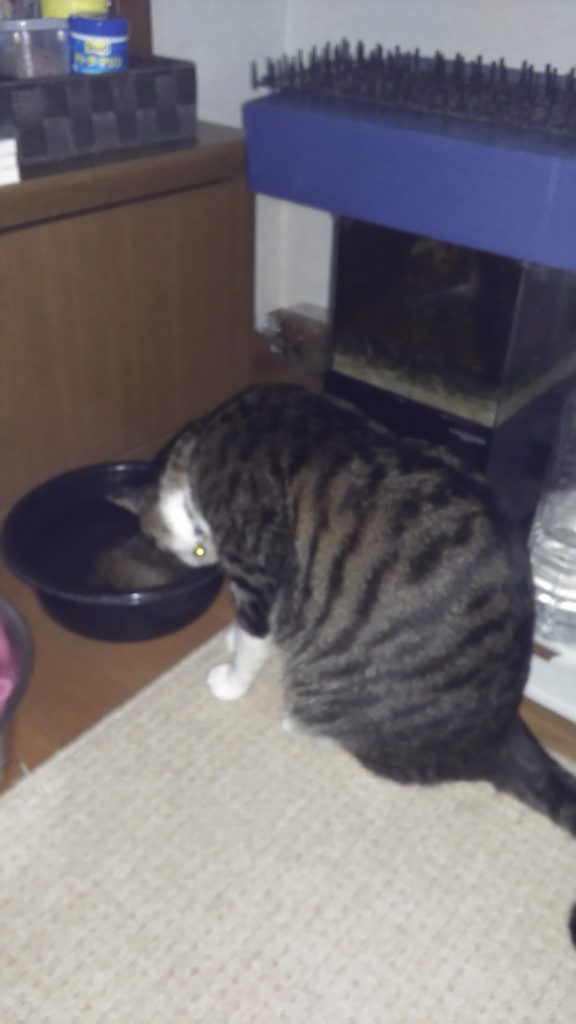 亀吉に餌をあげる時、いつも洗面器の水を飲みたがります😺😺