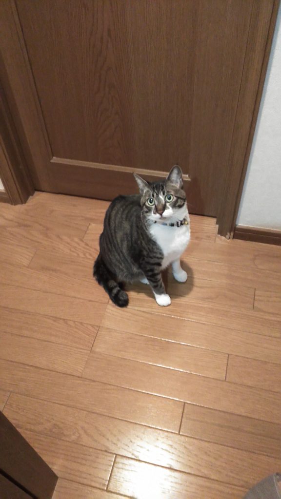 ふと見たら、こぶちが暗闇の廊下からこちらを見てました👀