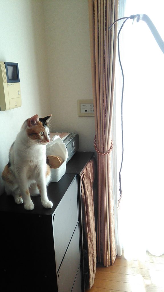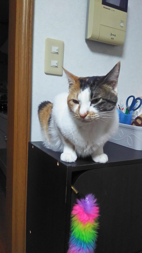 棚の上にいたはずのこぶちがいない・・・