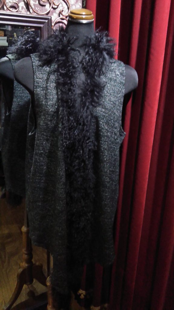 ご予約頂いていたグレー×チベットラム・ベスト、インポートのターコイズブルー×フラワー・ニットチュニック、ベージュ柄・ニットカーディガン、HIROKO KOSHINOのブラック・ベストタートル、ブラック×ベティちゃん・ジャンバースカート、グレーMIX・マフラーをお買い上げくださいました👗