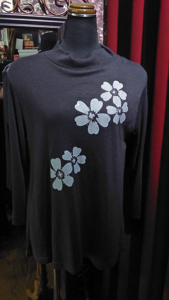 ホワイト×ブラック柄・シャツ、ブラック×フラワー・タートル、ネイビー×裏起毛・カーディガン、ネイビー・リュックサックをお買い上げくださいました👗👜