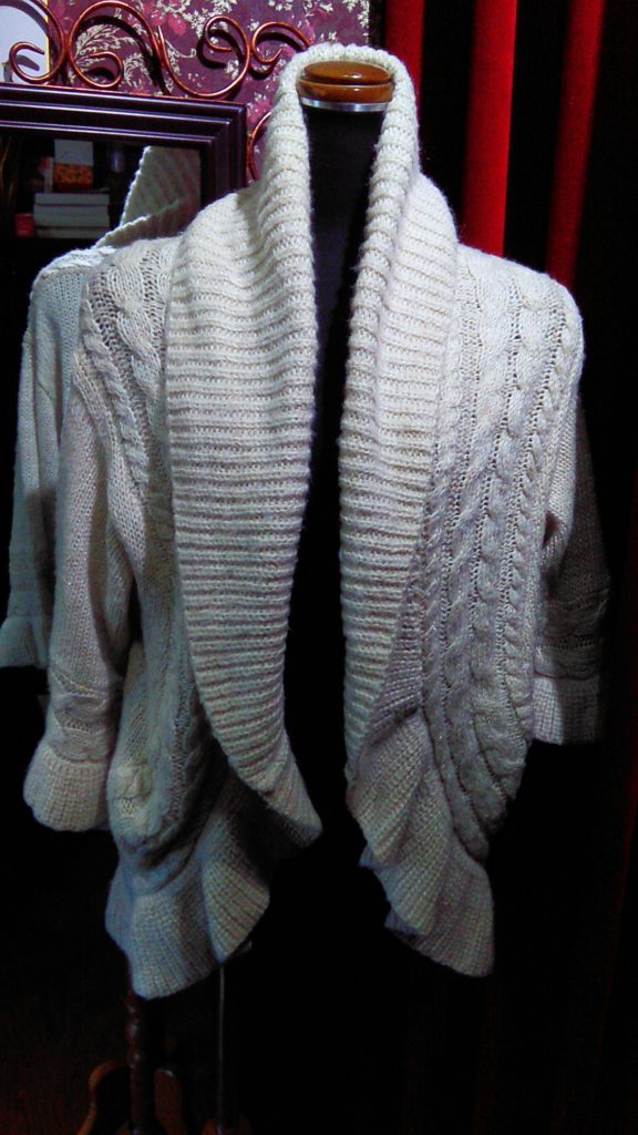 入荷したてのベージュ柄・チュニック、オフホワイト・ニットカーディガン、ブラック・マーメイドスカートをご予約頂きました👗