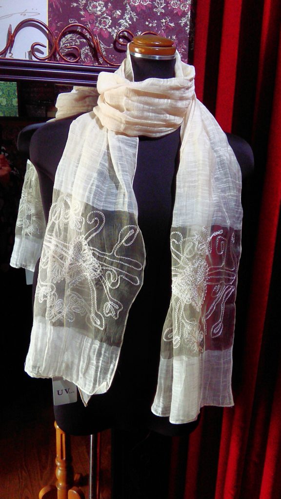 新品のオレンジ×刺繍フラワー・シルク入りストール、新品のライトブルー×刺繍フラワー・シルク入りストール、新品のピンク×ストライプ・シルク入りストール、新品のラベンダー×フラワー・ストールをお買い上げくださいました💞
