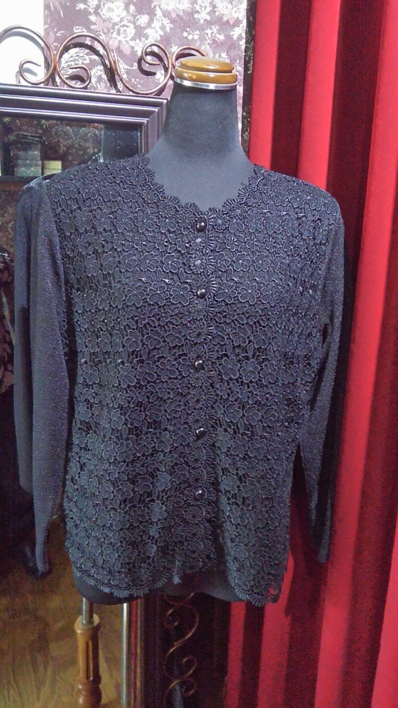 ブラック×袖レース・タートルチュニック、ブラック×総レース・ちりめんカーディガンをお買い上げくださいました👗