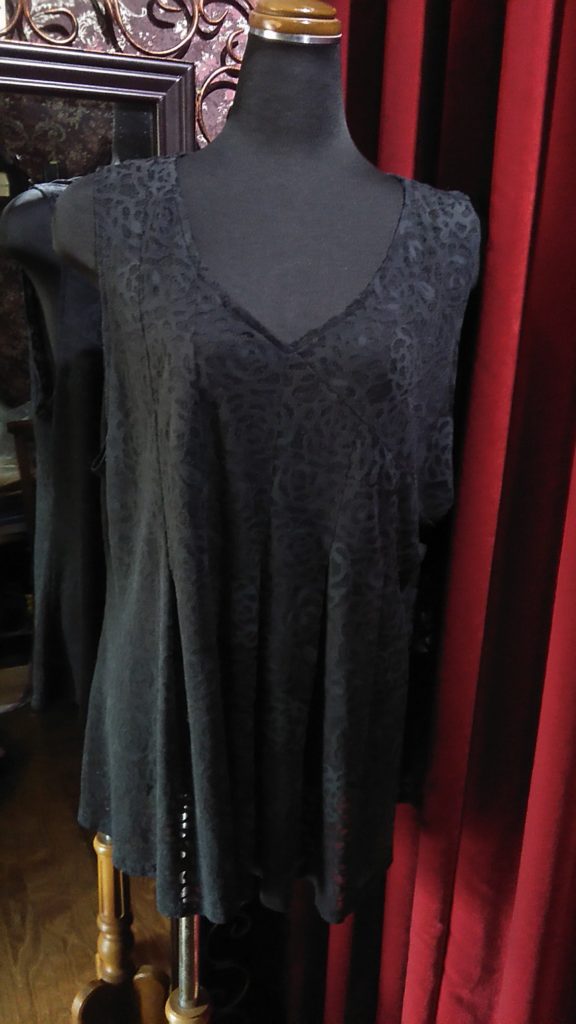ブラック×透け感ローズ・チュニックベスト、ブラック×ホワイト・編みチュニック